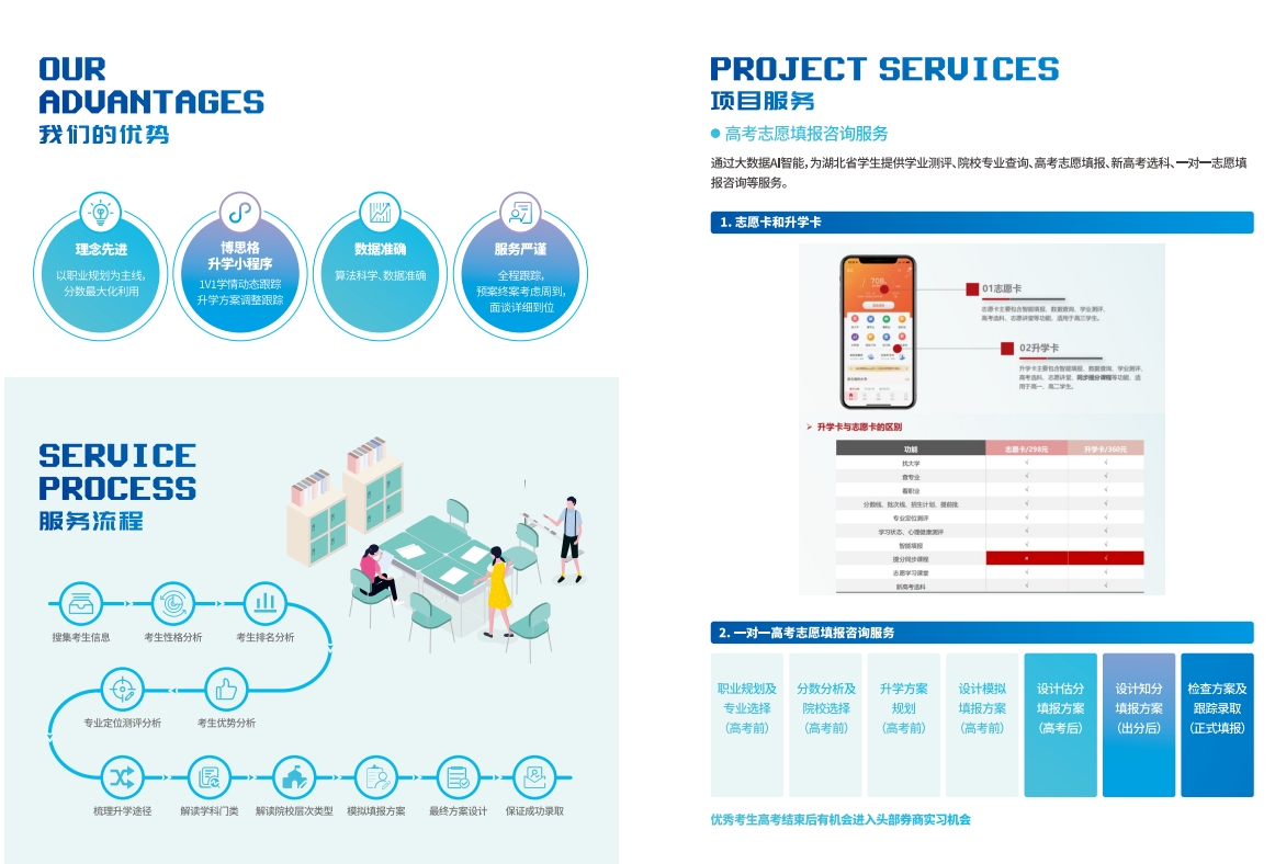 武汉市博思格文化交流有限责任公司是在九省通衢的湖北省武汉市注册的专注于从事国内中学生升学辅导事业的专业正规机构。公司由从事教育行业十年以上的教育行业专家组成,依托于大数据平台致力于为国内中学生提供生涯规划(含新高考选科规划)、特殊招生(含强基计划、综合评价)、高考志愿填报(文化类和艺术类)、出国留学文书及翻译、海内外实习等多维度、一条龙服务。